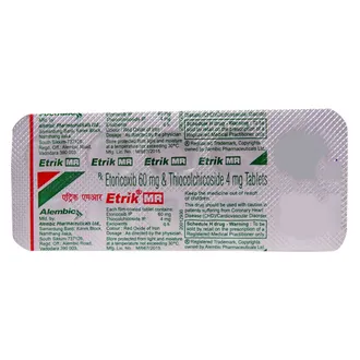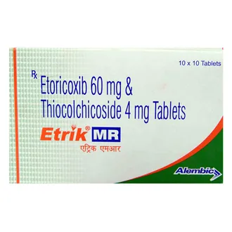 Etrik MR Tablet is a prescription medicine that combines a powerful pain reliever and a muscle relaxant to provide effective relief from muscle spasms and associated pain. It helps restore muscle flexibility, reduces inflammation, and improves mobility, making it easier to perform daily activities without discomfort.