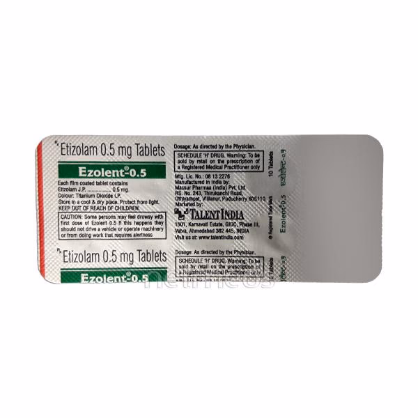 Ezolent 0.5mg Tablet, Ezolent Tablet 0.5mg, Ezolent 0.5 mg tablets, Ezolent medicine for anxiety and insomnia, Ezolent sleep aid, Ezolent prescription tablet