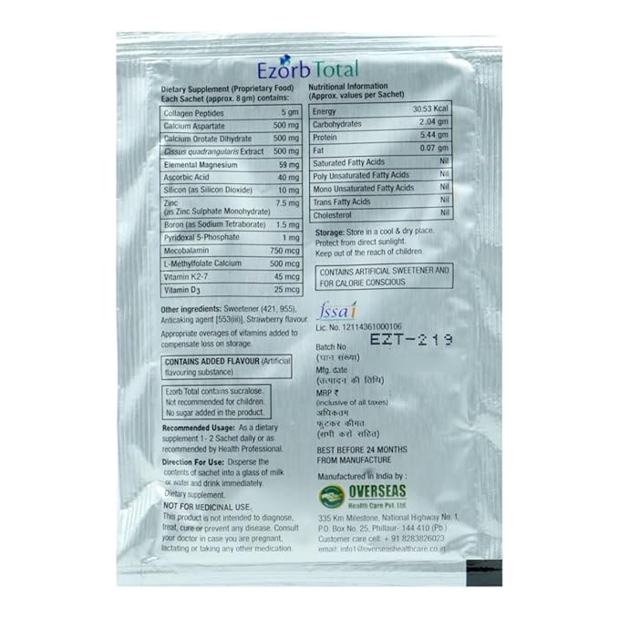 Ezorb Total, Ezorb Total Sachet, Bone Health Supplement, Joint Support Powder, Collagen & Calcium Supplement, Vitamin D3 & K2-7, Cissus Quadrangularis Supplement, Bone & Joint Wellness, Musculoskeletal Health Powder