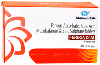 Keywords: Ferikind-M Tablet, Ferikind M iron folic acid zinc tablet, nutritional supplement for anaemia, vitamin B12 with iron tablet, haemoglobin booster tablet
