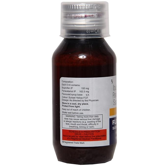 Shake the bottle well before use to ensure uniform distribution of the active ingredients. Measure the dose carefully using the provided measuring spoon or cup. Flexon Suspension can be taken with or without food, though taking it with meals may help reduce stomach upset. Follow the dosage instructions provided by your doctor or pharmacist. Do not exceed the recommended dose, and complete the course as advised, especially if the suspension is being used to manage fever or persistent pain.
