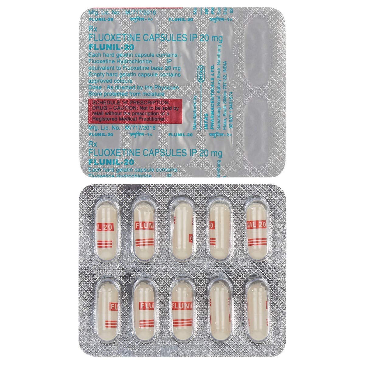 Flunil 20 Capsule is an antidepressant that belongs to a group of medicines known as selective serotonin reuptake inhibitors (SSRIs). It is commonly prescribed to treat depression and other mental health conditions such as panic disorder and obsessive-compulsive disorder (OCD).