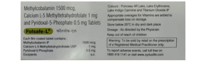 • Folsafe L methylcobalamin and folate tablets