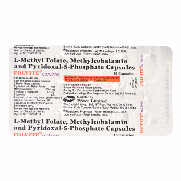 Variants: Folvite Active Capsule | Folvite Active Softgel | Folvite Active Capsule With Essential Vitamins | Folvite Active For Nutritional Deficiencies