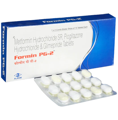 Formin PG 2 Tablet SR contains three active ingredients: Glimepiride, Metformin, and Pioglitazone. Each works differently to control blood sugar: