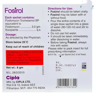 Fosirol Powder targets and eliminates the bacteria present in the urine that cause infections in the bladder. It helps alleviate discomfort and other symptoms quickly. However, continuing the full course of treatment as prescribed is vital to ensure all bacteria are removed and resistance is prevented.