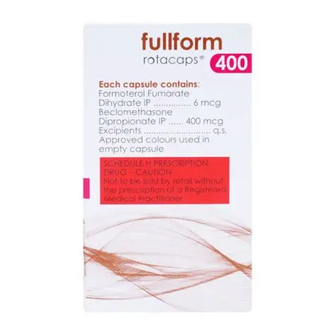 Fullform 400 Rotacap is a medication used to manage asthma, characterized by wheezing and shortness of breath, as well as chronic obstructive pulmonary disease (COPD), where airflow to the lungs is restricted. The medicine works by relaxing the muscles around the airways, allowing for easier breathing.