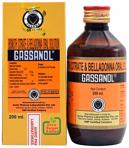 Aurio Pharma Gassanol Oral Solution is a carefully formulated liquid medication designed to support digestive health and relieve various stomach-related conditions. It provides effective management for gastric and duodenal ulcers, gastritis, dyspepsia, heartburn, mild acidity, and occasional stomach pain or mild diarrhea.