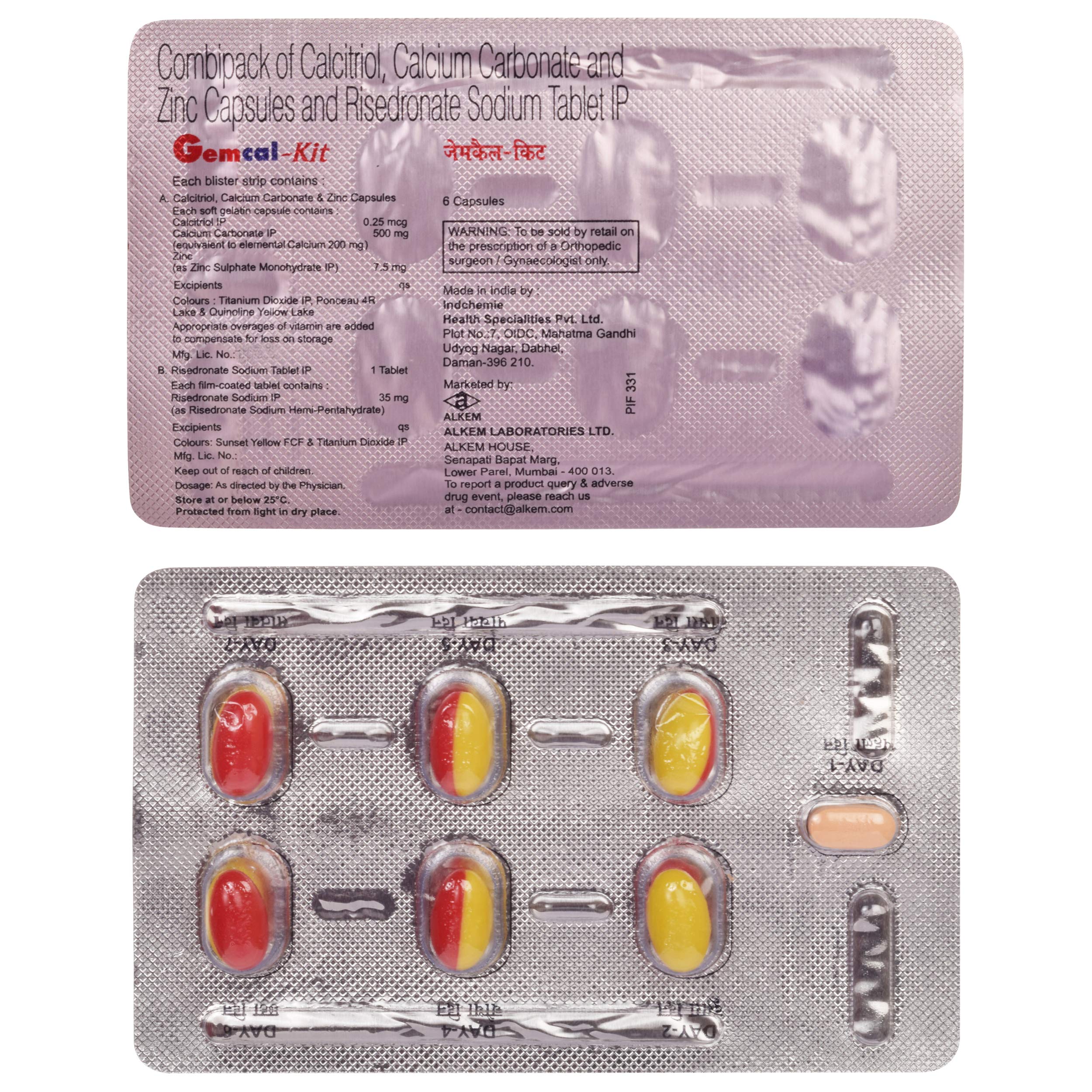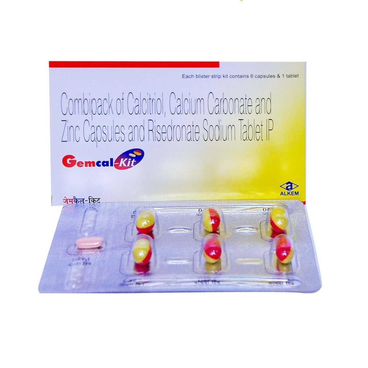 Keywords: GEMcal, GEMcal -Kit, osteoporosis medication, bone health supplement, calcium vitamin D tablet, risedronate combination, prevent bone loss, fracture prevention, strong bones support