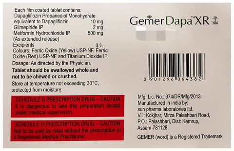 Take Gemer Dapa XR 10/2/500 Tablet exactly as prescribed.
