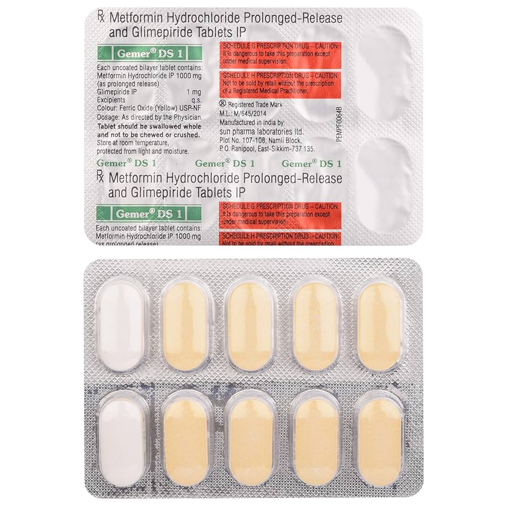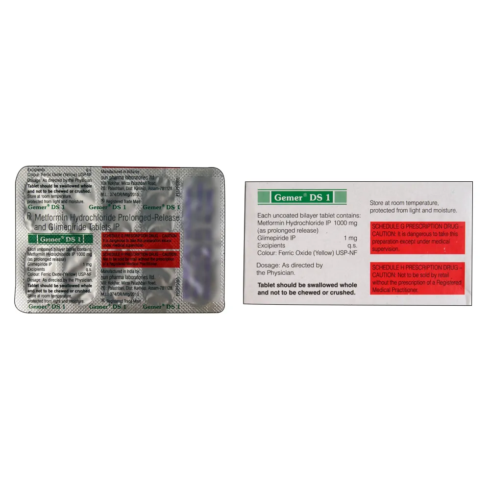 Keywords: Gemer DS 1, Gemer DS 1 Tablet PR, anti-diabetic tablet, type 2 diabetes medicine, glimepiride and metformin combination, blood sugar control medicine, diabetes management tablets