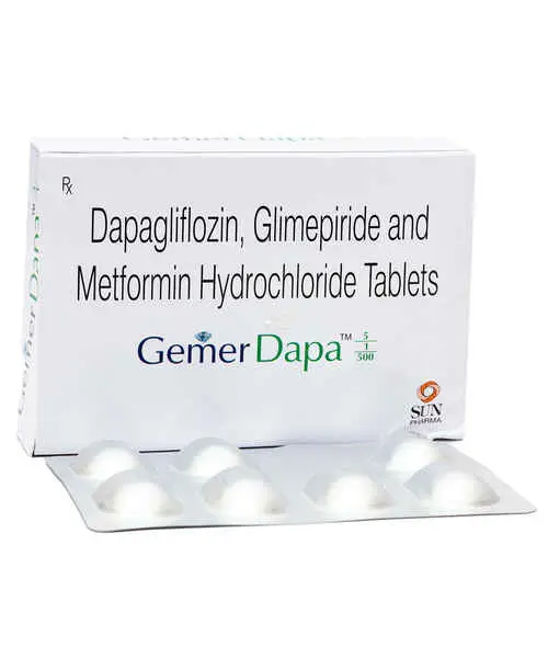 Gemerdapa 5mg/1mg/500mg Tablet, Gemerdapa Tablet, Dapagliflozin Glimepiride Metformin Tablet, Anti-diabetic medicine, Type 2 diabetes treatment, Blood sugar control tablet