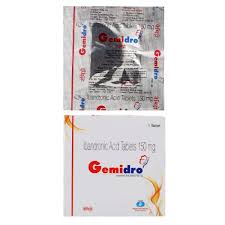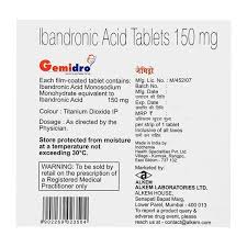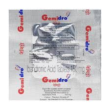 Gemidro Tablet is commonly prescribed for the prevention and management of osteoporosis in postmenopausal women. It works by preventing bone loss and helping to maintain bone density, reducing the likelihood of fractures. This medicine belongs to a class called bisphosphonates, which act by inhibiting the activity of cells responsible for bone breakdown, thereby keeping bones stronger over time. It is typically taken without food, preferably first thing in the morning. For best results, take it at the same time every day as advised by your healthcare provider. Swallow the tablet whole with a full glass of water and avoid lying down for at least 30 minutes afterward. Gemidro may be prescribed as part of a larger treatment approach that includes dietary changes, exercise, and supplementation with calcium and vitamin D. Some individuals may experience mild side effects such as headache, indigestion, dizziness, muscle or joint discomfort, heartburn, diarrhea, increased cholesterol, or urinary and respiratory infections. These symptoms usually resolve on their own, but if they persist, contact your doctor. Serious but less common risks include reduced calcium levels in the blood, kidney complications (especially in dehydrated individuals or those with existing kidney issues), and jaw pain. Make sure your doctor is aware of any pre-existing medical conditions or medications you’re using to prevent potential interactions. Use in breastfeeding women is not advised, and it should be used with caution in people with severe kidney problems. Avoid excessive alcohol and smoking, as both can negatively affect bone health. If a dose is missed, skip it and continue with the next scheduled dose—do not double up. This medication is considered generally safe for most users when taken as directed under medical supervision.