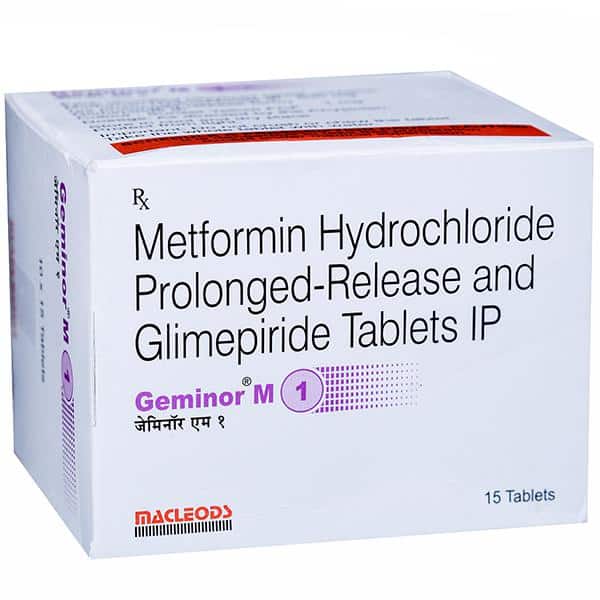 Geminor M 1 Tablet PR is a prescription medication used for the management of type 2 diabetes mellitus with coexisting high blood pressure. It is a combination therapy that typically contains Metformin (to control blood sugar) and Amlodipine (a calcium channel blocker to manage blood pressure). This dual-action formulation helps in regulating blood glucose levels while maintaining healthy blood pressure, which is essential in preventing diabetes-related cardiovascular complications. Geminor M 1 Tablet PR is designed as a prolonged-release (PR) formulation, ensuring a steady release of active ingredients for optimal efficacy throughout the day. Regular use, along with lifestyle modifications such as a balanced diet and exercise, helps improve glycemic control, maintain cardiovascular health, and enhance overall well-being.