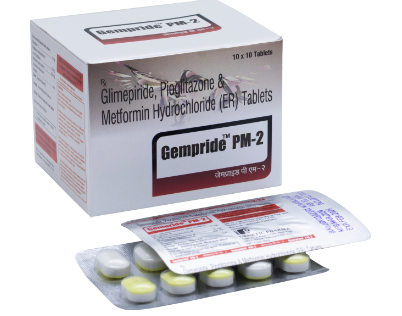 Gempride PM 2mg/500mg/15mg Tablet ER, Triple action diabetes tablet, Glimepiride Metformin Pioglitazone combination, Type 2 diabetes medication, Extended release antidiabetic tablet, Gempride PM ER
