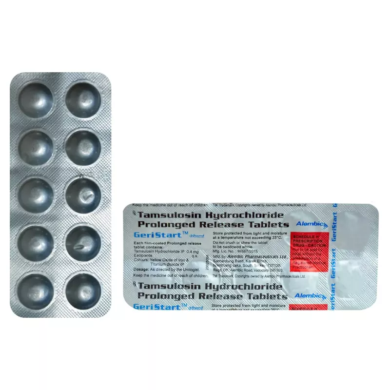 Take Geristart Tablet PR exactly as prescribed by your healthcare professional. It can be taken with or without food, but maintain a consistent daily schedule. Swallow the tablet whole without crushing, breaking, or chewing. Completing the prescribed course ensures optimal symptom relief and prevents worsening of urinary issues.