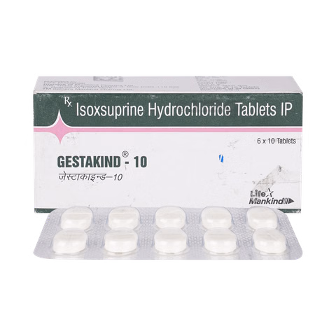 Gestakind 10mg Tablet is a potent vasodilator and uterine relaxant designed to manage premature labor and improve blood circulation in peripheral vascular conditions. By relaxing uterine muscles and widening blood vessels, this tablet helps prevent early contractions while supporting better blood flow throughout the body.