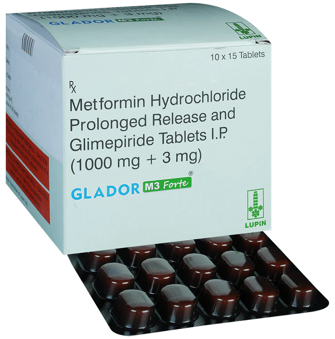 Glador M3 Forte Tablet PR is a prescription medicine used in the management of type 2 diabetes mellitus. It is a combination of two active ingredients that help regulate blood sugar levels in different ways. One works by stimulating the pancreas to release insulin, while the other decreases glucose production in the liver and enhances the body’s sensitivity to insulin. The prolonged release formulation ensures slow and steady release of the medicine, providing long-lasting blood sugar control throughout the day.
