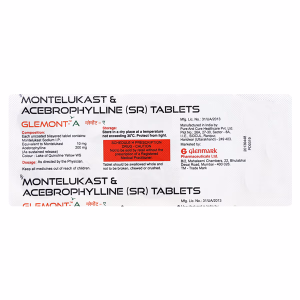 Glemont-A Tablet SR, Glemont-A Tablet, Acebrophylline + Montelukast Tablet, Asthma Relief Tablet, COPD Medication, Bronchitis Treatment Tablet, Anti-Asthmatic Tablet, Respiratory Health Tablet