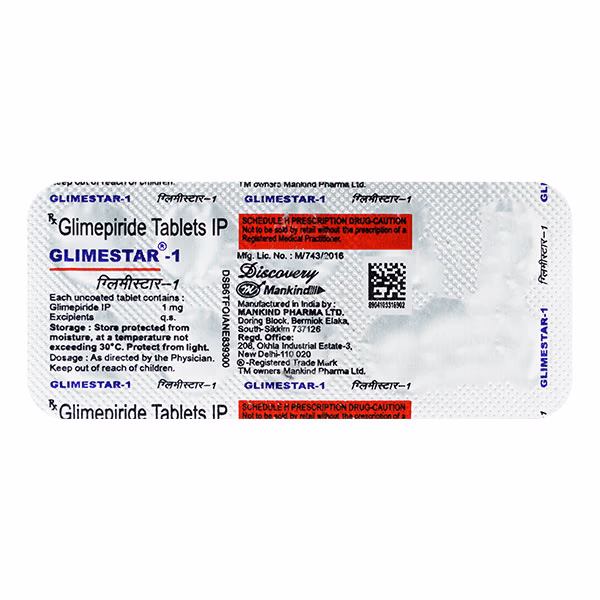 Glimestar 1 Tablet works by stimulating insulin secretion from the pancreas, helping to maintain stable blood glucose levels and supporting overall diabetes management.
