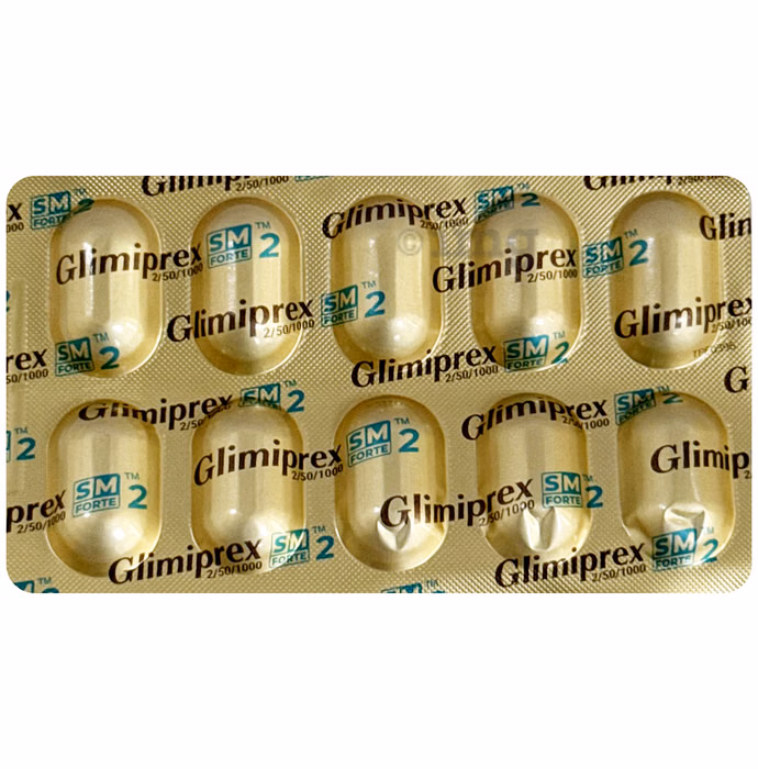 Glimiprex SM Forte 2 Tablet is a combination of three medicines that work together to help reduce blood sugar levels in adults with type 2 diabetes. It is usually prescribed when changes in diet, exercise, and other medications have not provided sufficient control over blood glucose levels.