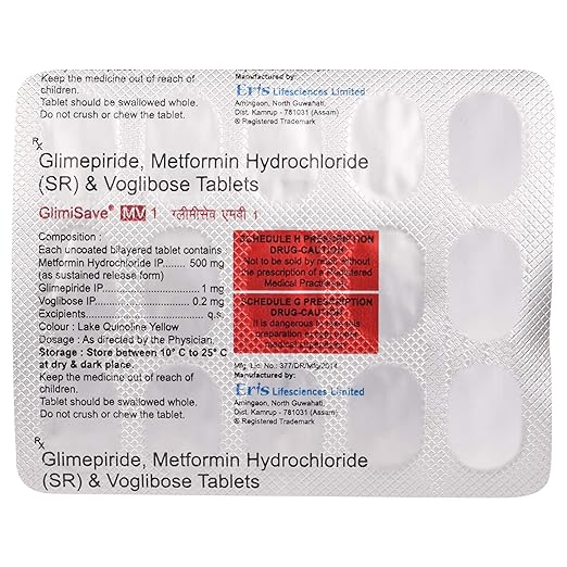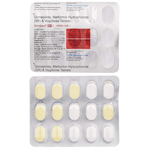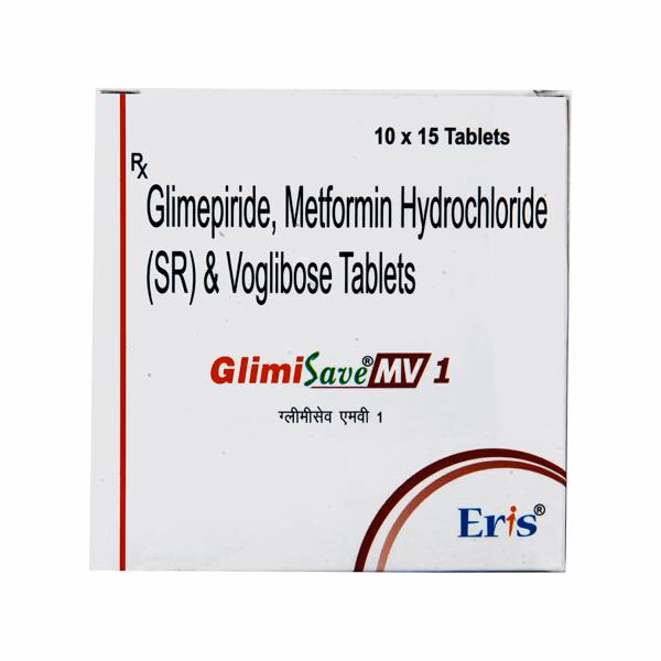 Glimisave MV 1 Tablet SR is a prescription medicine used in the management of type 2 diabetes mellitus. It combines three active ingredients that work together to keep blood glucose under control by improving insulin function, lowering sugar production in the liver, and slowing sugar absorption from the gut.
