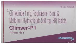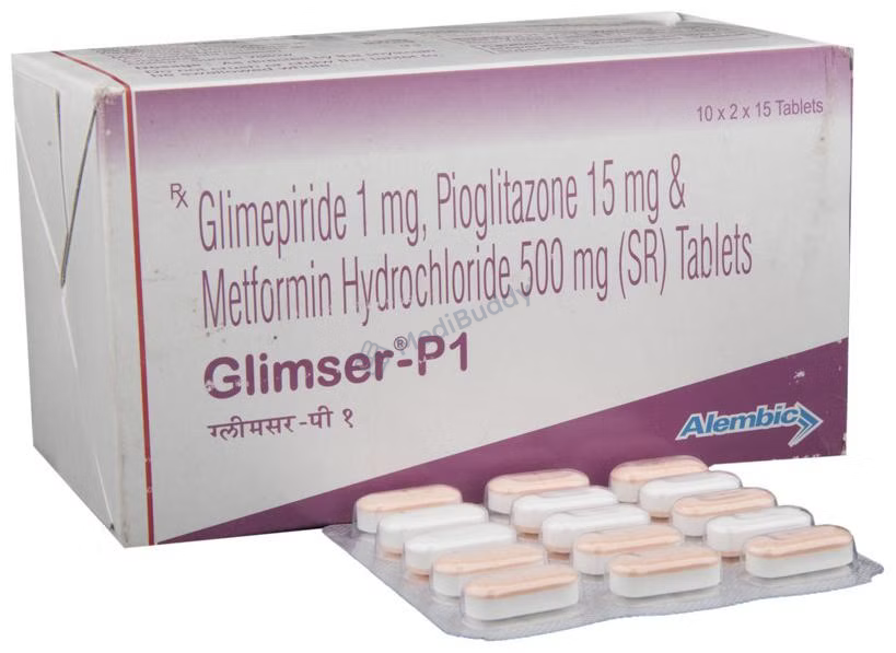 Glimser-P1 Tablet SR is a prescription medicine designed for adults with type 2 diabetes mellitus. This triple-action formulation combines Glimepiride, Metformin, and Pioglitazone to provide effective blood sugar control. When used alongside a healthy diet and regular exercise, it helps the body utilize insulin properly, reduces glucose production, and improves overall blood sugar management.