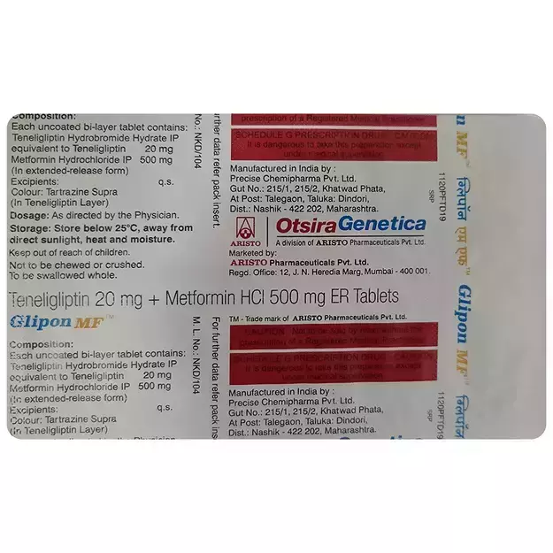 GliPON MF Tablet PR is a prescription medicine formulated to manage type 2 diabetes mellitus effectively. It combines two active ingredients that work together to regulate high blood sugar levels, helping reduce the risk of long-term diabetes-related complications such as kidney damage, vision problems, nerve disorders, and cardiovascular conditions.