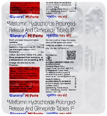 Glucoryl-M1 Forte Tablet PR is an oral antidiabetic medicine used to manage type 2 diabetes mellitus in adults. It contains two active components that work together to help regulate blood sugar levels effectively. This medication is most beneficial when used in combination with a proper diet, regular physical activity, and lifestyle modifications. It is recommended to take Glucoryl-M1 Forte Tablet PR with food to reduce gastrointestinal discomfort and to improve absorption. Consistency in dosage timing each day is important for optimal control of blood glucose levels. Your doctor will determine the appropriate dosage based on your individual response and needs. It is important not to stop this medicine without consulting your doctor, as doing so can lead to elevated blood sugar levels, increasing the risk of serious complications such as kidney damage, vision problems, nerve issues, and circulatory problems. Some commonly observed side effects of this medication include low blood sugar (hypoglycemia), which may present as sweating, shaking, headache, and dizziness. To manage this, it is advised to consume regular meals and carry a fast-acting source of glucose, such as juice or candy. Other side effects may include nausea, diarrhea, altered taste, abdominal discomfort, headache, and in some cases, minor weight gain or respiratory tract infections. Alcohol should be avoided while on this medication as it may increase the risk of low blood sugar. This medicine is not suitable for individuals with type 1 diabetes, diabetic ketoacidosis, or those with severe kidney or liver disorders. Those with existing heart conditions should use this medication only under strict medical supervision. It is not recommended for use during breastfeeding, and pregnant women should only use it if clearly advised by their doctor. The combination of Glimepiride and Metformin works by stimulating the pancreas to produce more insulin and by reducing glucose production in the liver while increasing the body’s sensitivity to insulin. This dual action helps maintain stable blood glucose levels. If a dose is missed, it should be taken as soon as remembered unless it is close to the time of the next scheduled dose, in which case the missed dose should be skipped. Doubling up on doses should be avoided. Regular monitoring of blood sugar levels, kidney function, and liver function is important while using this medication.