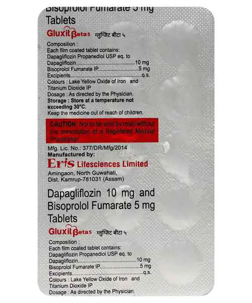 Gluxit ßeta 5 Tablet is prescribed for the management of type 2 diabetes. It works through a dual approach—one ingredient helps the kidneys remove extra sugar from the body, while the other boosts insulin release from the pancreas. This combination helps maintain balanced blood sugar levels and lowers the risk of diabetes-related complications when used along with diet and physical activity.