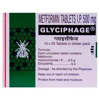 Glyciphage 500mg Tablet is a medication used to manage type 2 diabetes by helping control high blood sugar levels. It works by improving the body’s response to insulin and reducing glucose production in the liver. Along with a healthy diet and regular exercise, it helps prevent complications related to diabetes, such as kidney, nerve, or heart problems.