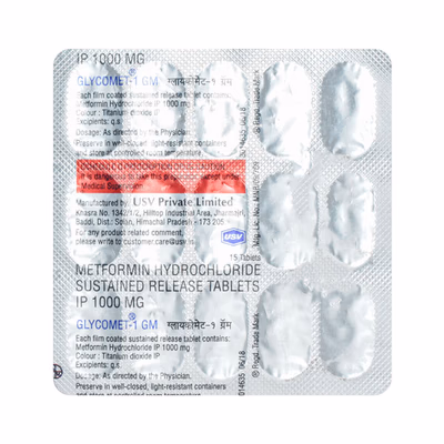 Glycomet 1gm Tablet SR is a prescription medicine designed to manage type 2 diabetes mellitus and support women with polycystic ovary syndrome (PCOS). By regulating blood sugar levels, it helps reduce the risk of serious diabetes-related complications such as kidney damage, vision problems, nerve disorders, and cardiovascular issues.