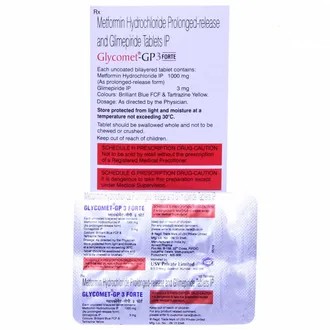 Glycomet-GP 3 Forte Tablet is a trusted anti-diabetic medicine designed for adults with type 2 diabetes mellitus. It combines Glimepiride and Metformin, two clinically proven medicines that work together to regulate blood sugar levels. By maintaining optimal glucose control, this tablet reduces the risk of long-term diabetes complications such as kidney problems, nerve damage, vision loss, and heart disease.