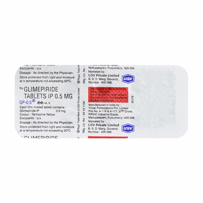 GP 0.5 Tablet is an oral antidiabetic medication from the sulfonylurea class, specifically formulated to help adults manage type 2 diabetes mellitus. By supporting better blood sugar control, it reduces the risk of diabetes-related complications such as nerve damage, kidney issues, and vision problems.