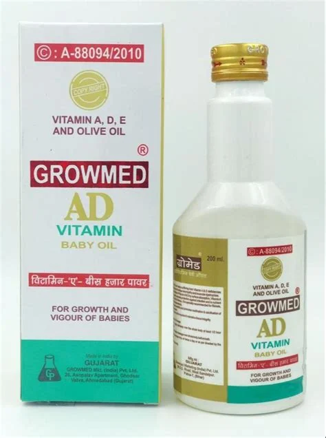 This oil is particularly recommended in conditions where vitamin deficiencies may affect normal growth, such as rickets, dry skin problems, or eye-related complications like keratomalacia. Daily use after gently massaging it into the skin ensures better absorption and maximum benefits. By combining nourishment, protection, and strengthening effects, Growmed AD Vitamin Baby Oil helps babies grow in a healthier and more active way while keeping their delicate skin safe from dryness and external irritants.
