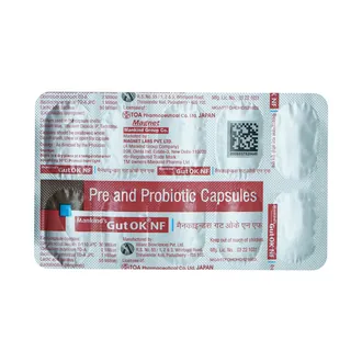 Gut OK NF Capsule is a digestive health supplement designed to support gut function and relieve symptoms of indigestion, bloating, gas, and irregular bowel movements. It helps maintain a healthy balance of gut bacteria, promotes smooth digestion, and supports overall gastrointestinal wellness. This capsule may also help improve nutrient absorption and reduce discomfort associated with occasional digestive disturbances.