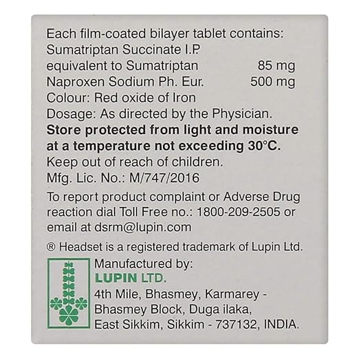 Headset Tablet is a combination medicine commonly used for the treatment of migraine attacks. It contains Paracetamol (a pain reliever and fever reducer) and Sumatriptan (a selective serotonin receptor agonist that helps relieve migraine symptoms).
