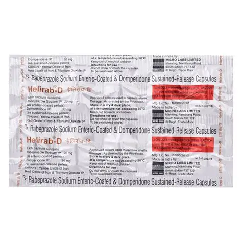 Helirab-D Capsule SR is a combination medicine used to treat gastroesophageal reflux disease (GERD/acid reflux) and peptic ulcer disease. It helps relieve symptoms like heartburn, stomach pain, and irritation, while promoting easy passage of gas to reduce discomfort.