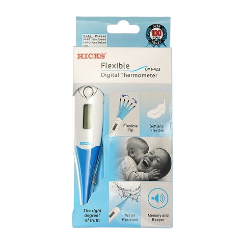 The Hicks DT-402 Flexible Tip Digital Thermometer is designed for comfort, accuracy, and ease of use. Its gentle flexible tip adapts naturally, ensuring comfortable temperature readings for all ages. With a fast response time and precise digital display, it provides reliable results in seconds. Built with a water-resistant body and automatic power-off feature, it offers both durability and convenience, making it an ideal choice for home and professional use.