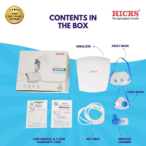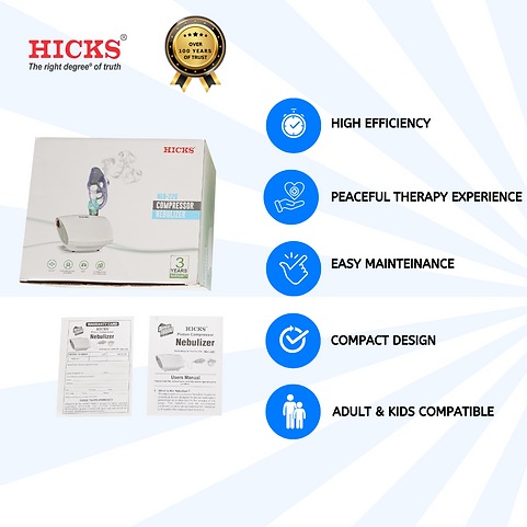 The Hicks Nebulizer NEB 220 is designed to deliver rapid and effective relief through efficient aerosol therapy. With its quick mist generation and minimal residue design, it ensures optimized medication usage. Built for durability and ease of use, this nebulizer offers reliable performance for the whole family. Its lightweight and compact design makes it convenient for both home use and travel.