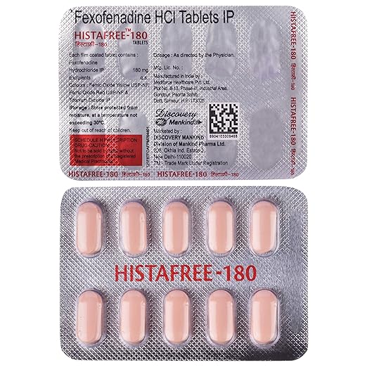 Keywords: Histafree 180 Tablet, Anti-Allergy Tablet, Antihistamine for Allergies, Sneezing Relief Tablet, Runny Nose Medicine, Allergy Symptom Relief, Skin Allergy Tablet, Histamine Blocker Tablet