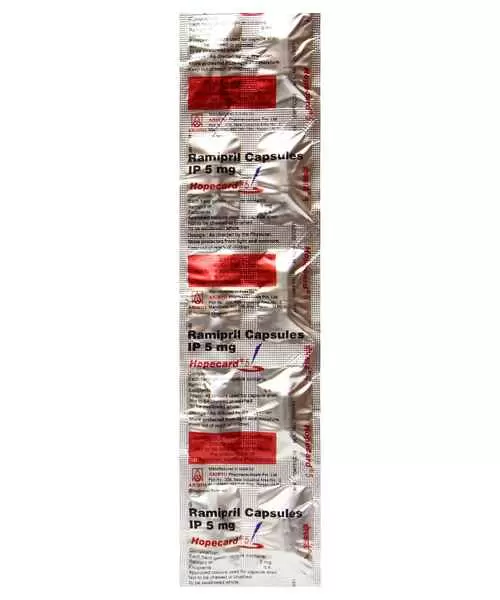 Hopecard 5 Capsule is an ACE inhibitor. It reduces the strain on the heart and relaxes blood vessels, promoting smoother blood flow and improving heart efficiency.