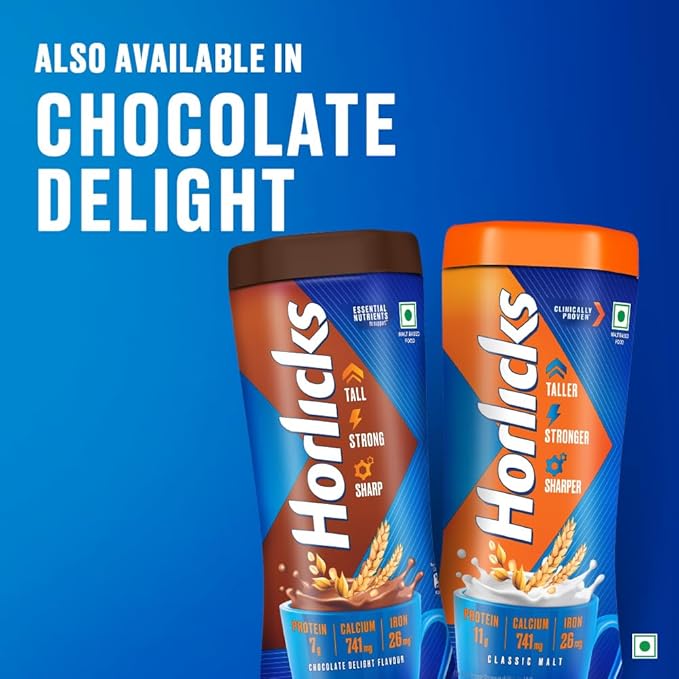 Horlicks Nutrition Drink Jar is a wholesome malted beverage designed to provide essential nutrition for children, teenagers, and adults. Packed with proteins, vitamins, and minerals, it supports growth, immunity, and overall well-being. Its rich malt flavor makes it a tasty and convenient choice for daily consumption, helping the whole family meet their nutritional needs.