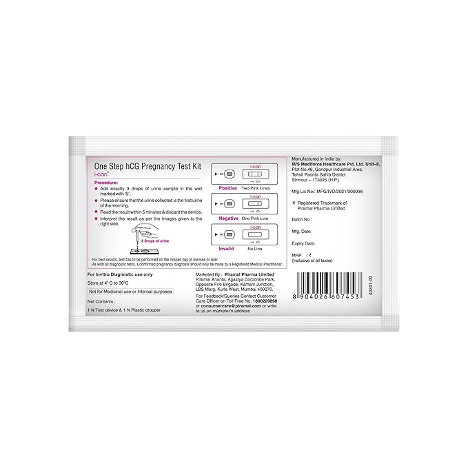 i-Can One Step Pregnancy Test Kit is a reliable and convenient home-use diagnostic tool designed to detect the presence of the hCG hormone in urine, an early indicator of pregnancy. This easy-to-use kit delivers fast and accurate results within minutes, allowing women to privately and confidently confirm their pregnancy status in the comfort of their own home.