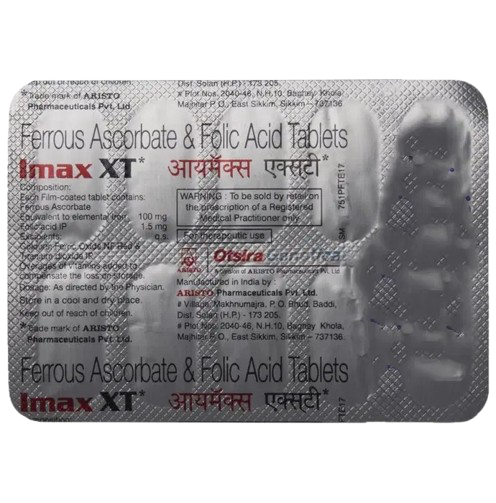 Imax XT Tablet is a combination of iron and vitamin supplements designed to address iron deficiency and related anemia. By enhancing iron levels and supporting the production of healthy red blood cells, it helps improve energy levels, maintain overall health, and reduce the risk of complications caused by low iron.