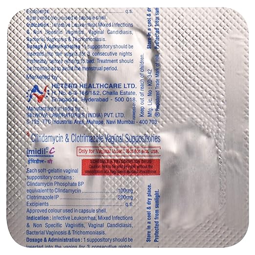 Imidil-C Vaginal Suppository, Imidil C Suppository, Imidil Vaginal Infection Treatment, Clindamycin and Clotrimazole Suppository, Antifungal Vaginal Medicine, Vaginal Discharge Relief, Vaginal Infection Cure