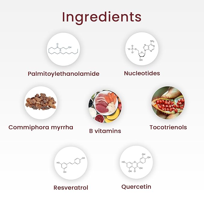 Commiphora myrrha 50 mg: Offers anti-inflammatory support to promote nervous system comfort.