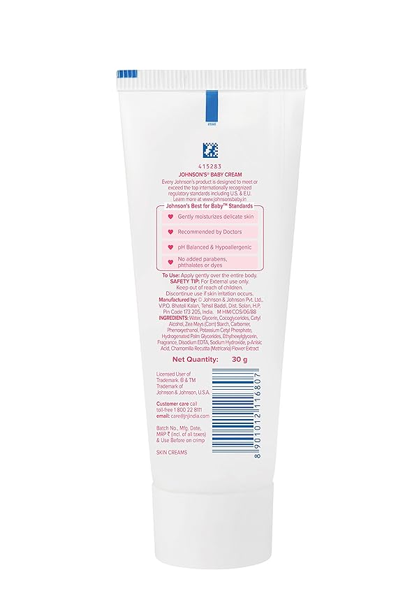 JJ Baby Cream 30 g is a gentle and nourishing cream specially made for a baby’s soft and sensitive skin. Its rich, smooth texture provides deep hydration and keeps the skin soft, supple, and protected from dryness. The cream helps form a moisture shield on the skin to prevent roughness, irritation, and chapping caused by cold weather or frequent washing.