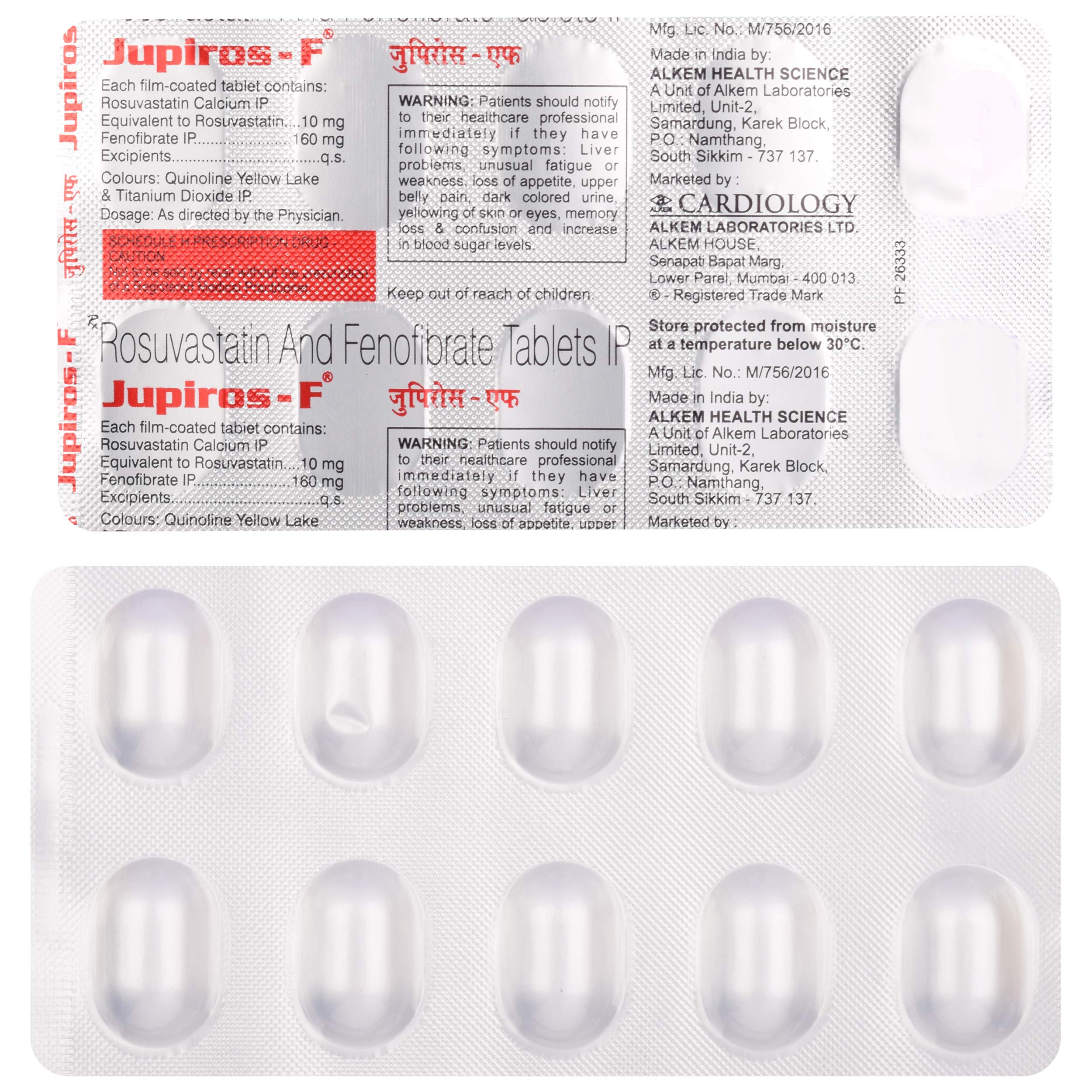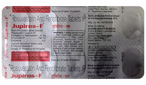 Jupiros-F Tablet is a combination medication designed to manage high levels of cholesterol and triglycerides (blood fats), particularly in individuals who have not responded adequately to lifestyle modifications alone. By lowering harmful fats in the bloodstream, this medicine plays a crucial role in reducing the risk of cardiovascular complications such as heart attacks and strokes.
