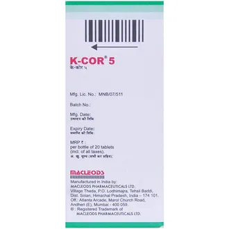 K-Cor 5 Tablet is a carefully formulated potassium supplement designed to maintain electrolyte balance and support cardiovascular and muscular health. Potassium is an essential mineral that plays a vital role in regulating nerve impulses, muscle contractions, and fluid balance in the body. K-Cor 5 Tablet helps prevent potassium deficiency, which can lead to fatigue, muscle weakness, cramps, and irregular heart rhythms. Regular use under medical supervision helps support healthy heart function, proper muscle activity, and optimal hydration. The tablet is designed for easy administration and effective absorption, ensuring the body receives the necessary potassium to maintain normal physiological functions. When used alongside a balanced diet, adequate hydration, and lifestyle modifications, K-Cor 5 Tablet contributes to overall well-being, enhanced energy, and improved cardiovascular and muscular health.